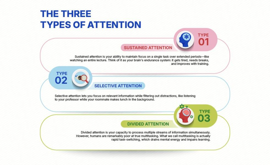 Hence, we have put together this blog post that explains the neuroscience behind attention, how online classes drain focus, and provides evidence-based strategies that can actually eliminate this. Whether you’re a student struggling through Zoom University or a professional taking online courses, you’ll discover practical techniques to reclaim your concentration and maximize your learning potential.